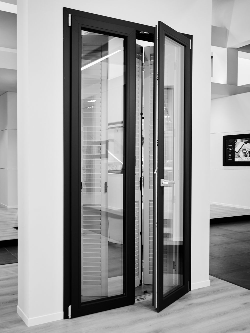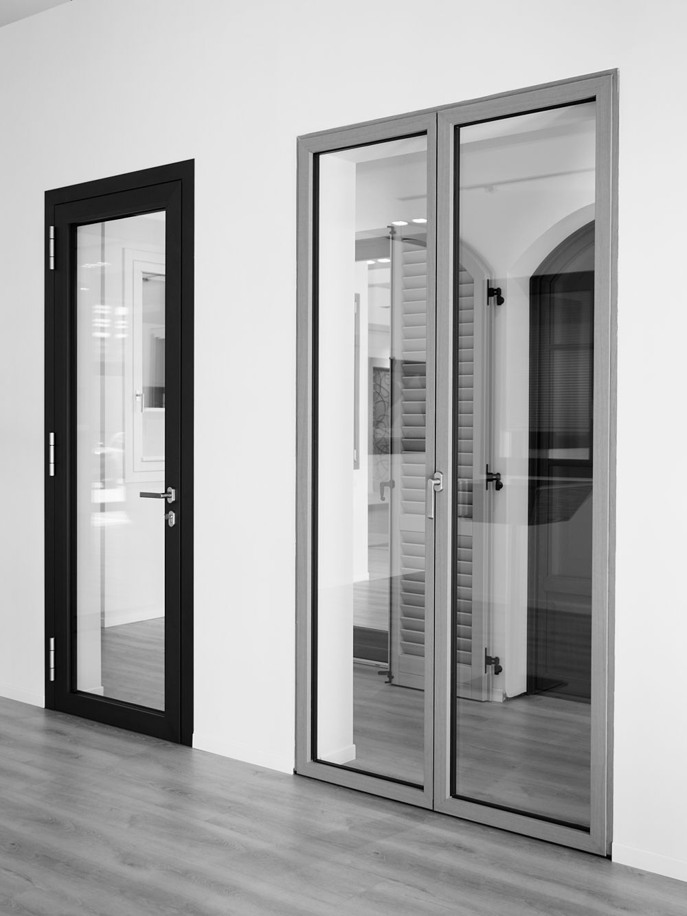 Nella galleria sottostante potrete vedere alcuni esempi di porte/finestre dal nostro showroom. Ad esempio per alcuni modelli di finestre si può scegliere di averla in legno nella parte interiore e alluminio fuori, o viceversa; Vedrete anche esempi di frangisole e taparelle elettriche.